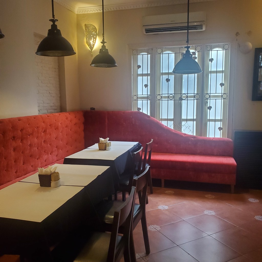 I’ve never been to a meeting in such a fancy setting. Waiters bring you as many cappuccinos as you would like, you can get hearty sandwiches, and there is crushed velvet fuchsia tufted booth seating. It is a little hard to hear people quietly share over the pop music being piped in from the speakers, but it also kind of breaks up the awkward silences between shares.