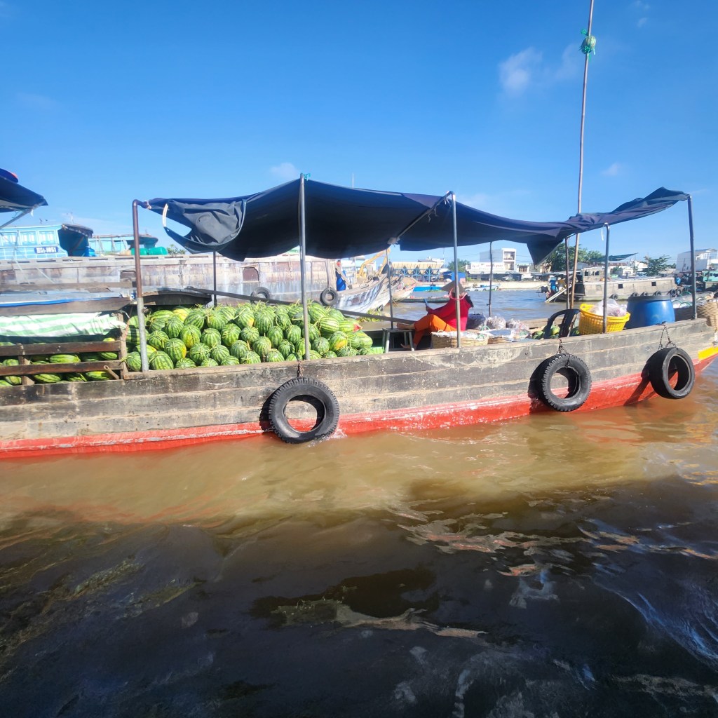 On a different putt-putt river boat, we meandered around the floating market, which is like if Costco was established over 50 boats in the middle of a river. Everything is for sale in large volume only. Regular people come to buy in bulk and then sell the product individually in front of their house. But of course, there’s also small merchants giving out samples of fruit and selling snacks and refreshments to both the buyers and the sellers. It’s like if Costco’s hotdog stand moved around and tied themselves to your cart