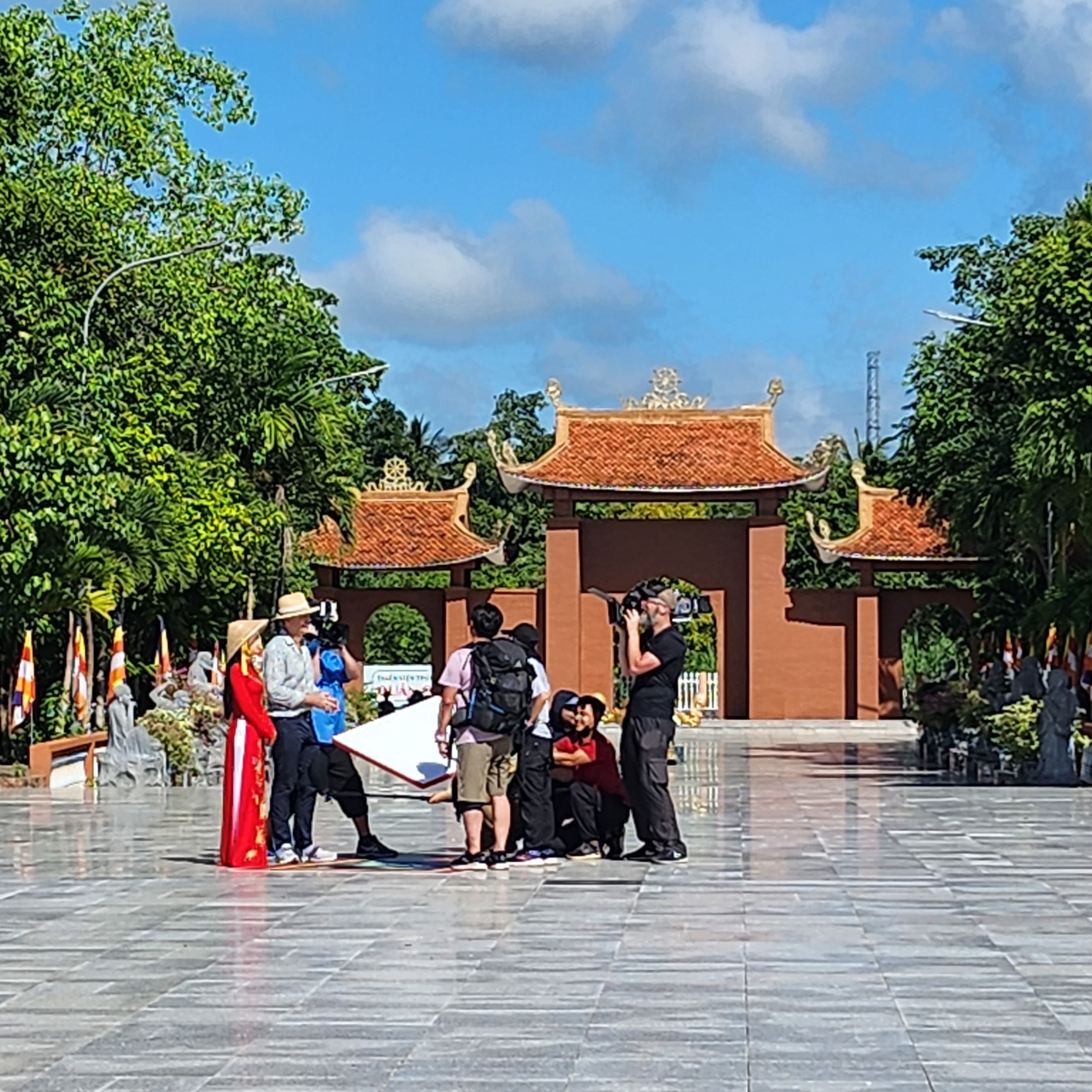 We set off about thirty minutes late. However, if the grannies hadn’t been late, then we wouldn’t have witnessed a small segment of the American TV show, The Amazing Race, being filmed at the largest pagoda in South Vietnam, Trúc Lâm Phương Nam Zen Monastery. We arrived just as some contestants were hopping out of a cab and running to the courtyard to meet the host of the show and a beautiful woman in an Ao Dai (traditional Vietnamese dress with trousers) who clapped her tiny hands every time a pair of contestants would run up.