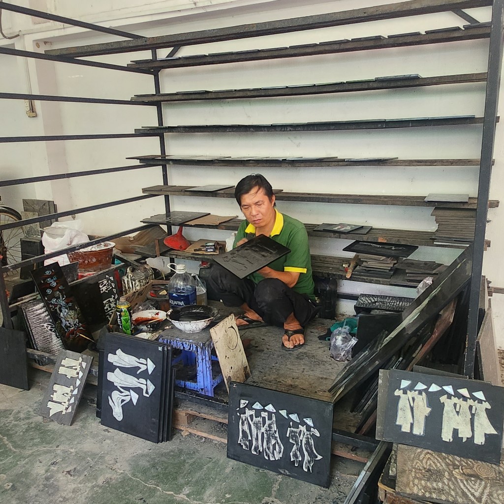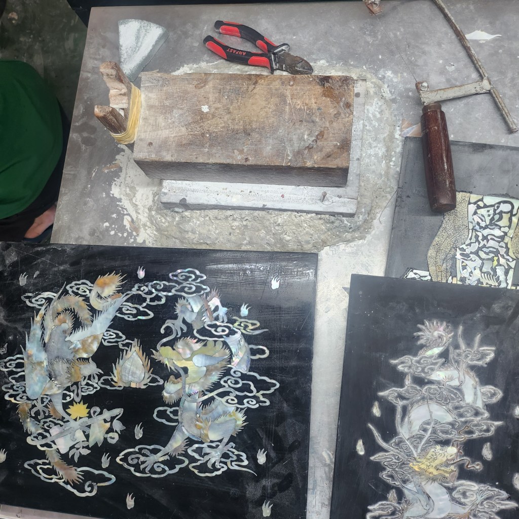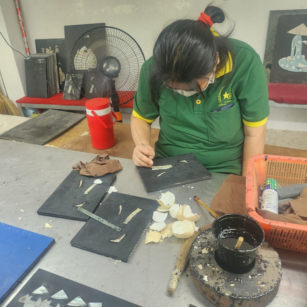 On our way out to the Cu Chi tunnels, we stopped at an artist coop staffed entirely by people affected by Agent Orange. They make lacquer artwork pieces with paintings, duck eggshell mosaics, and mother-of-pearl mosaics.