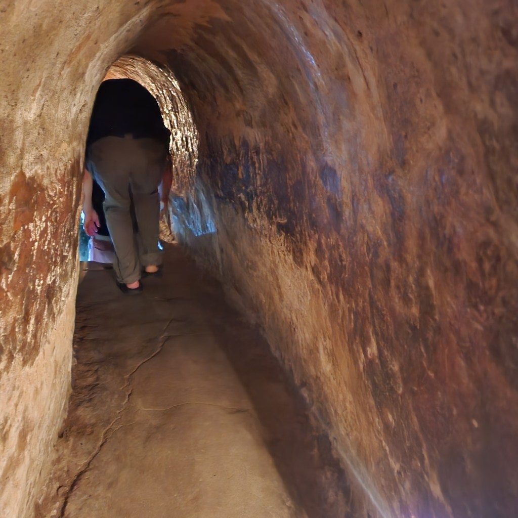 The guide demonstrated about a dozen different kinds of traps used by the Viet Cong to keep the enemy from finding a way to properly clear out the tunnels. Each soldier had an area of the tunnels he/she knew, but soldiers didn’t share information with each other, so you just knew your area and you didn’t wander anywhere else. There were local guides who were often women dressed in black with a black and white gingham scarf used for a variety of things like stopping bleeding or strangling someone. These women would guide soldiers who had marched down from the north through the woods so they wouldn’t step in a trap.