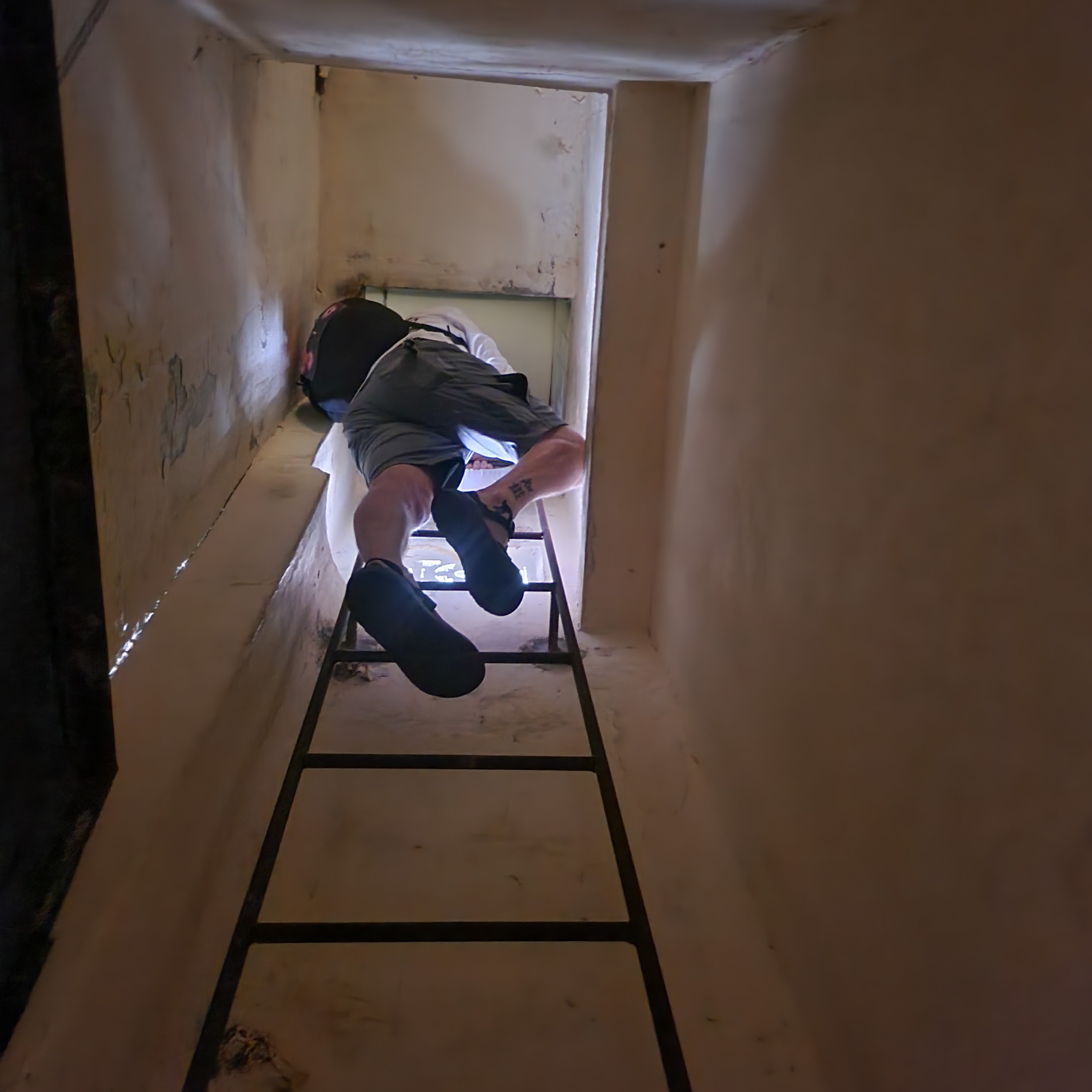 Because we were with Vi, we could experience the entire escape route (except for jumping from the top balcony to the neighbor’s roof). She came up to the floor to unlock the little doors at the top of the secret ladder for us. We emerged from the cabinet underneath the bathroom sink. She informed us that there was a guy in the adjoining bedroom taking a nap. We found some poor old guy laying on his bed, probably a little confused about why these white people are crawling out from his bathroom sink. But, maybe that’s just part of the biz and it happens all the time.