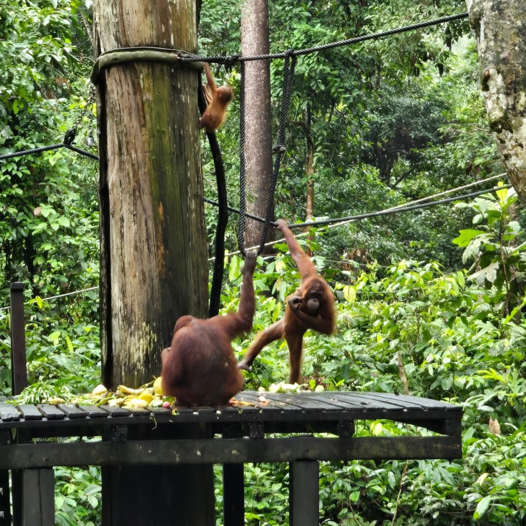 Sun bears, monkeys, and orangutan conservation area in Borneo. I know they are just specks with my phone camera, I was so moved by watching them for hours. One of the park volunteers at the orangutan park said, see them while they are still here because they probably won’t be around for much longer.