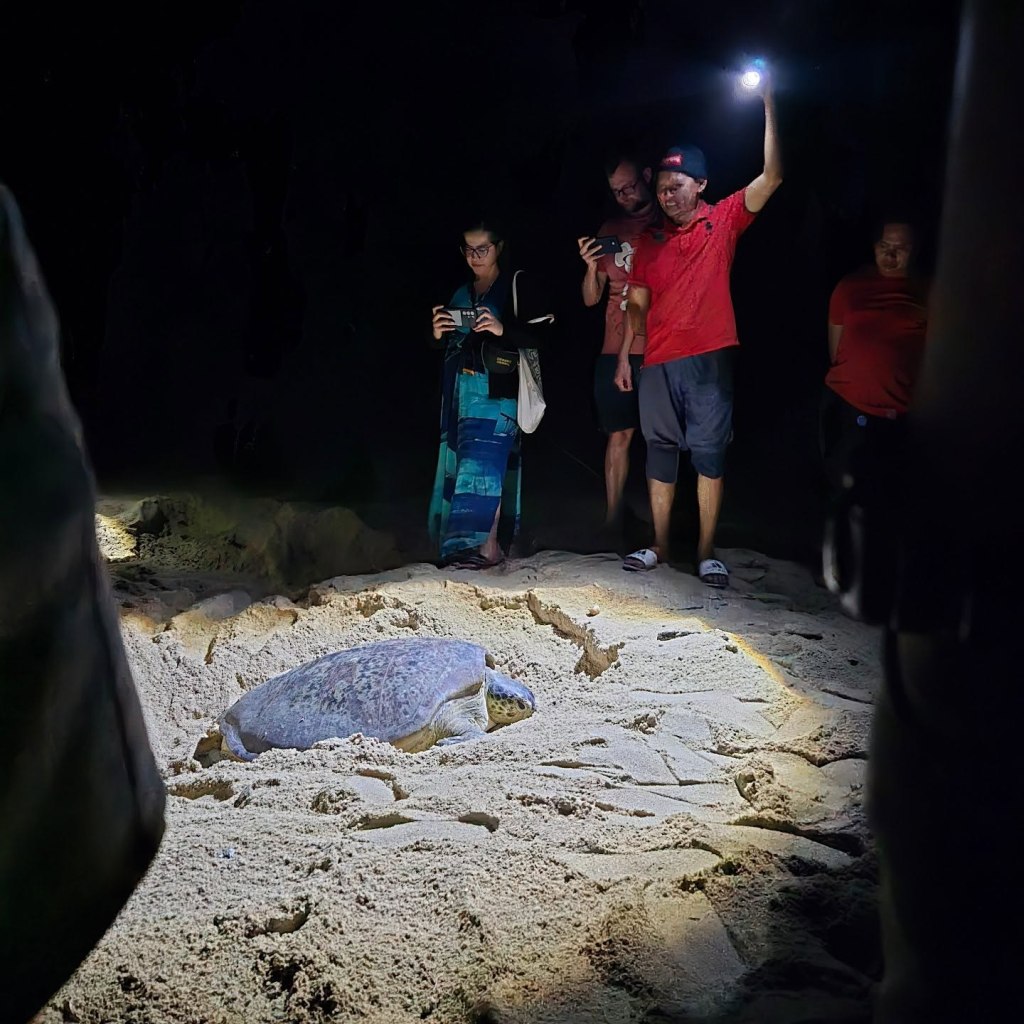 Sea turtles come every night to lay eggs. Folks stay up all night watch for them and collect the eggs to put them in a hatchery area to protect them. I think they never stop smoking cigarettes either. 17 turtles came in the one night we were there. The beach is patrolled by armed police watching for poachers. There is less an 1% survival rate for the cute lil babies skittering to the sea. What a crazy existence for all.