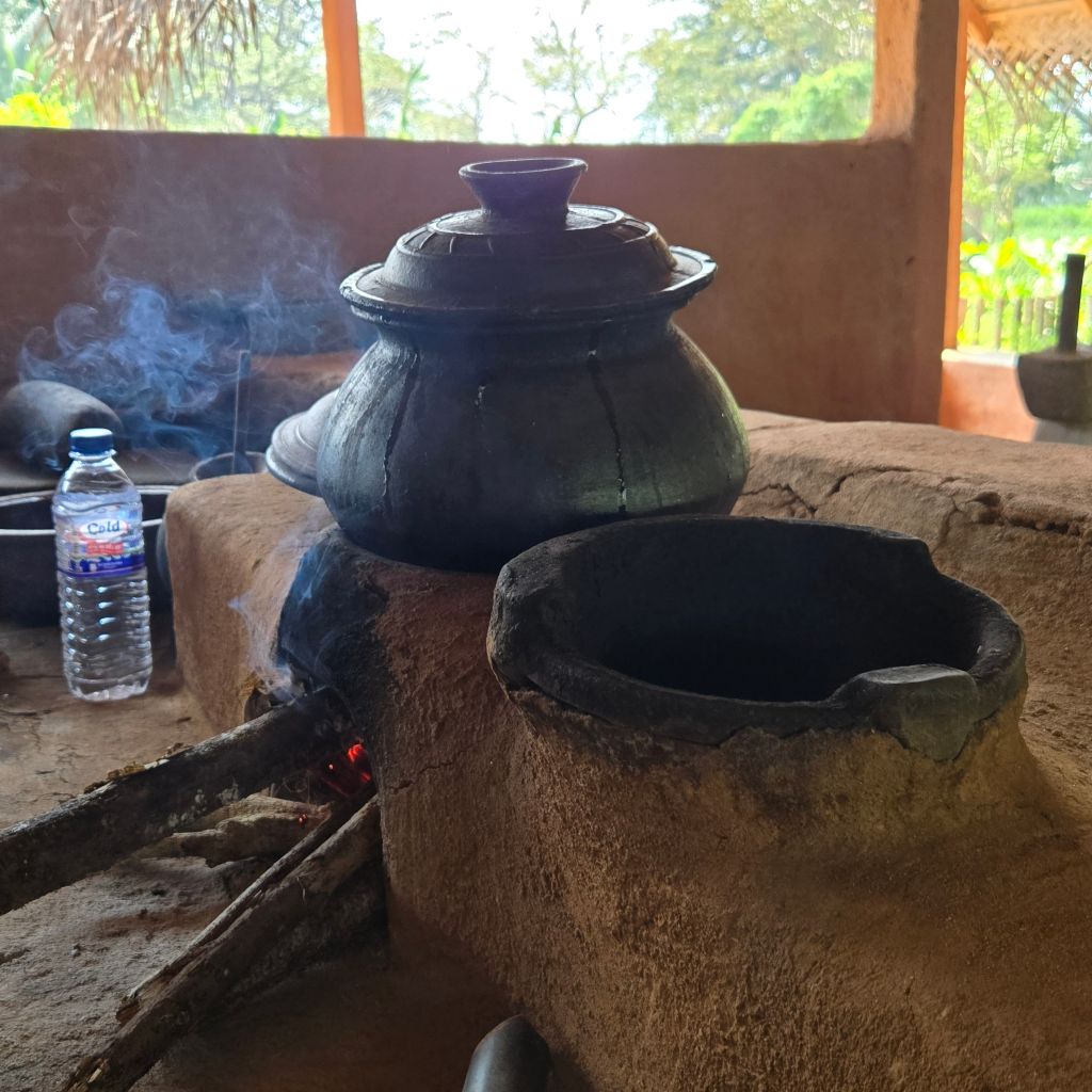 We cruised around the countryside, at one point transferring from our van to a wagon pulled by a small tractor then to a canoe to a traditional village house where a woman demonstrated how to cook lentils and make coconut samba. We ate a delicious meal there and rode tuk tuks back to the van.