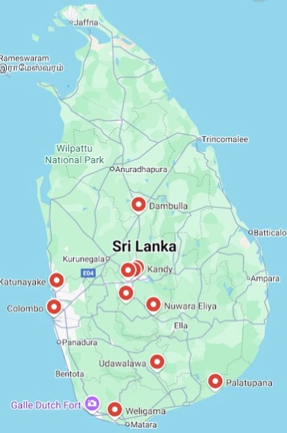 We arrived in Colombo late on Saturday, technically early Sunday morning. We went on a tour all around the center and south of the island, and then flew home the following Sunday evening to arrive in Hanoi at 9am on Monday.
